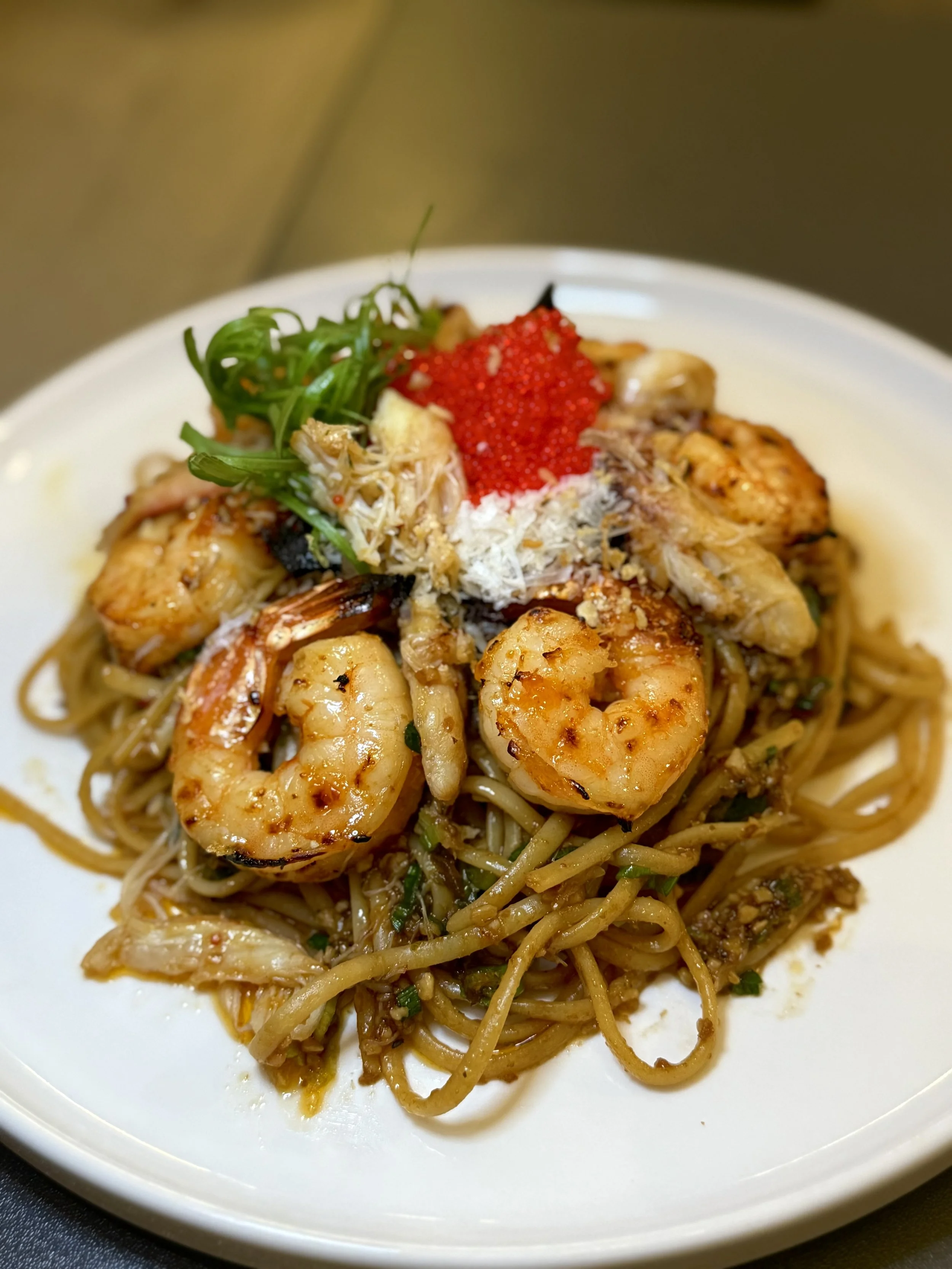 Grilled Shrimp & Dungeness Crab Garlic Noodle